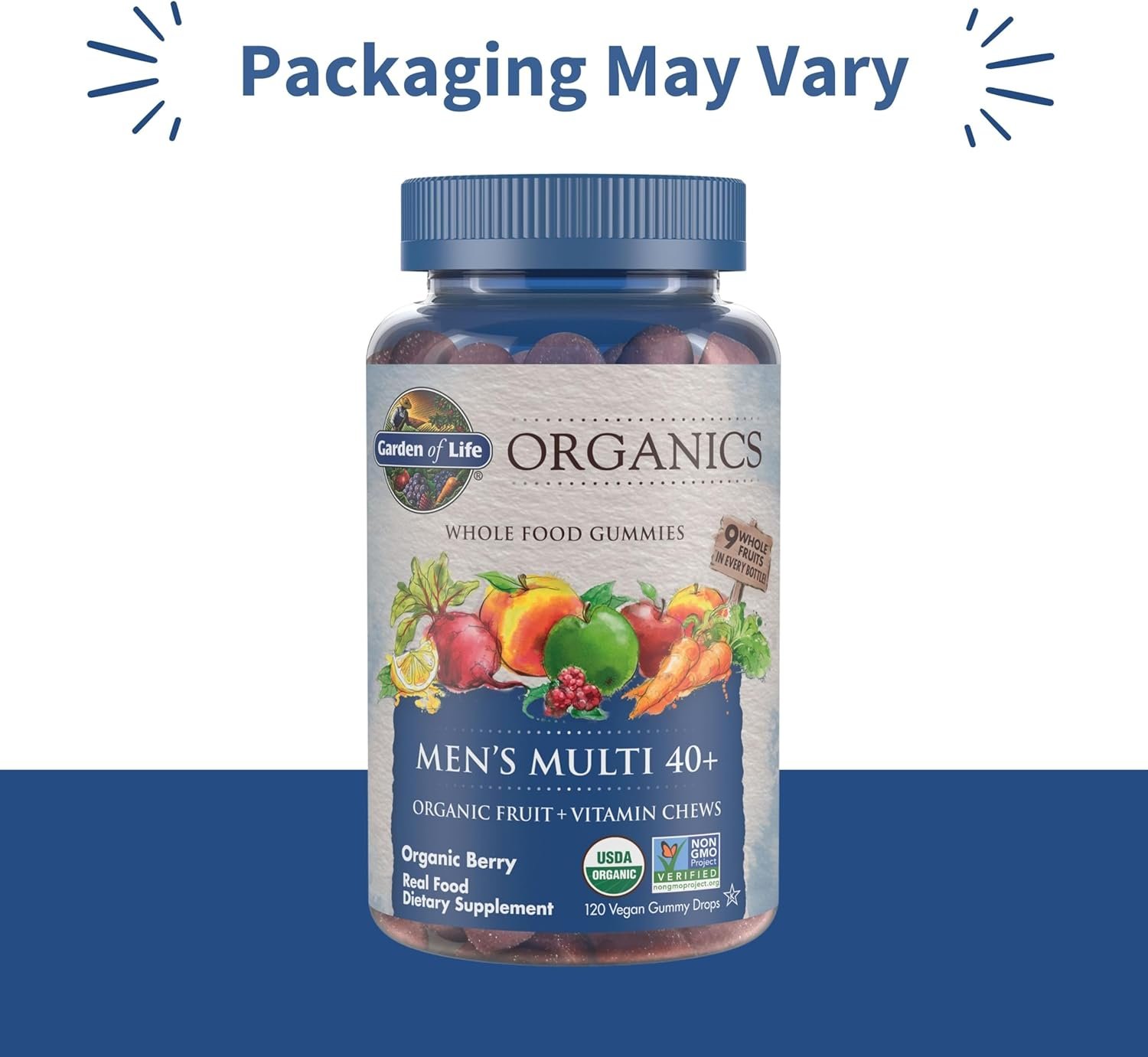 Garden of Life Organics Men 40+ Gummy Vitamins – Berry – Certified Organic, Non-GMO, Vegan, Kosher Complete Multi – Methyl B12, C & D3 – Gluten, Soy & Dairy Free, 120 Real Fruit Gummies