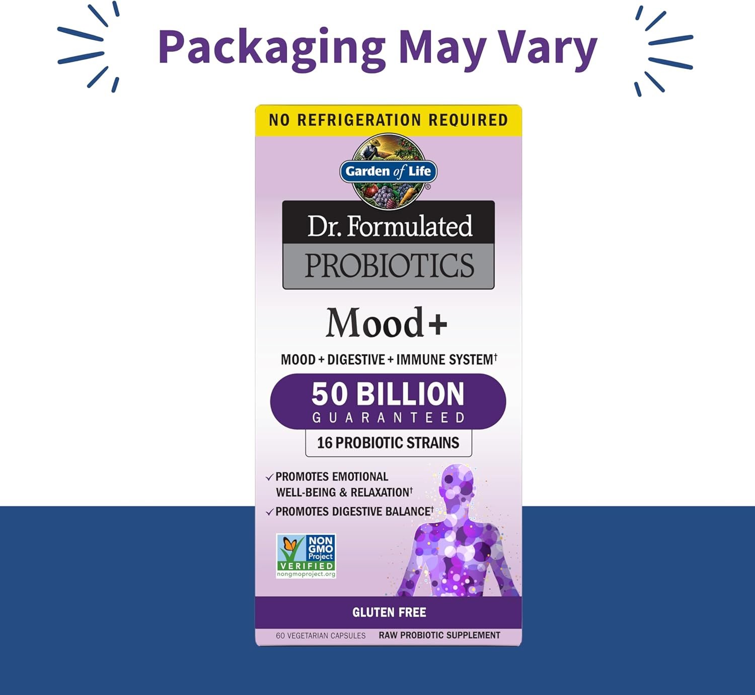 Dr. Formulated Probiotics Mood is a unique probiotic formula with clinically studied strains to support mood and includes organic ashwagandha and organic Alaskan blueberries—all in just 2 capsules a day †. Emerging science is showing a link between gut and brain health. Dr. Perlmutter created this unique formula with 16 probiotic strains including clinically studied probiotics L. helveticus R0052 and B. longum R0175 in the amounts clinically shown to support mood and relaxation.† Mood plus probiotics for women and men also have 350mg of organic ashwagandha and organic Alaskan blueberries. Shelf stable, no need to refrigerate.