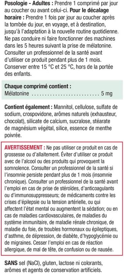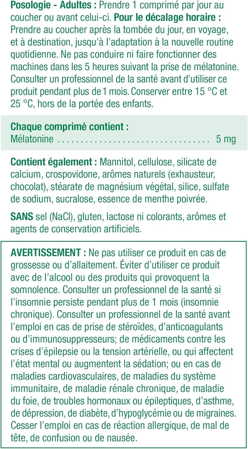 Jamieson Melatonin 5 mg Fast Dissolving Tablets help establish normal sleep patterns to give you a more restful, relaxing sleep. The quick dissolving formula helps to improve absorption and maximize effectiveness. It helps you fall asleep faster and stay asleep longer so you can wake up rested. These statements have not been evaluated by the Food and Drug Administration. This product is not intended to diagnose, treat, cure or prevent any disease.