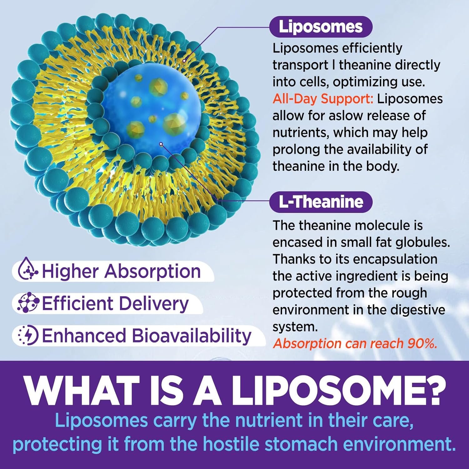 Liposomal Theanine Gummies: Using liposomal technology, our l theanine chewable gummies formula offers higher absorption compared to traditional theanine supplements. Take 1 gummy for kids, 2 gummies for adults