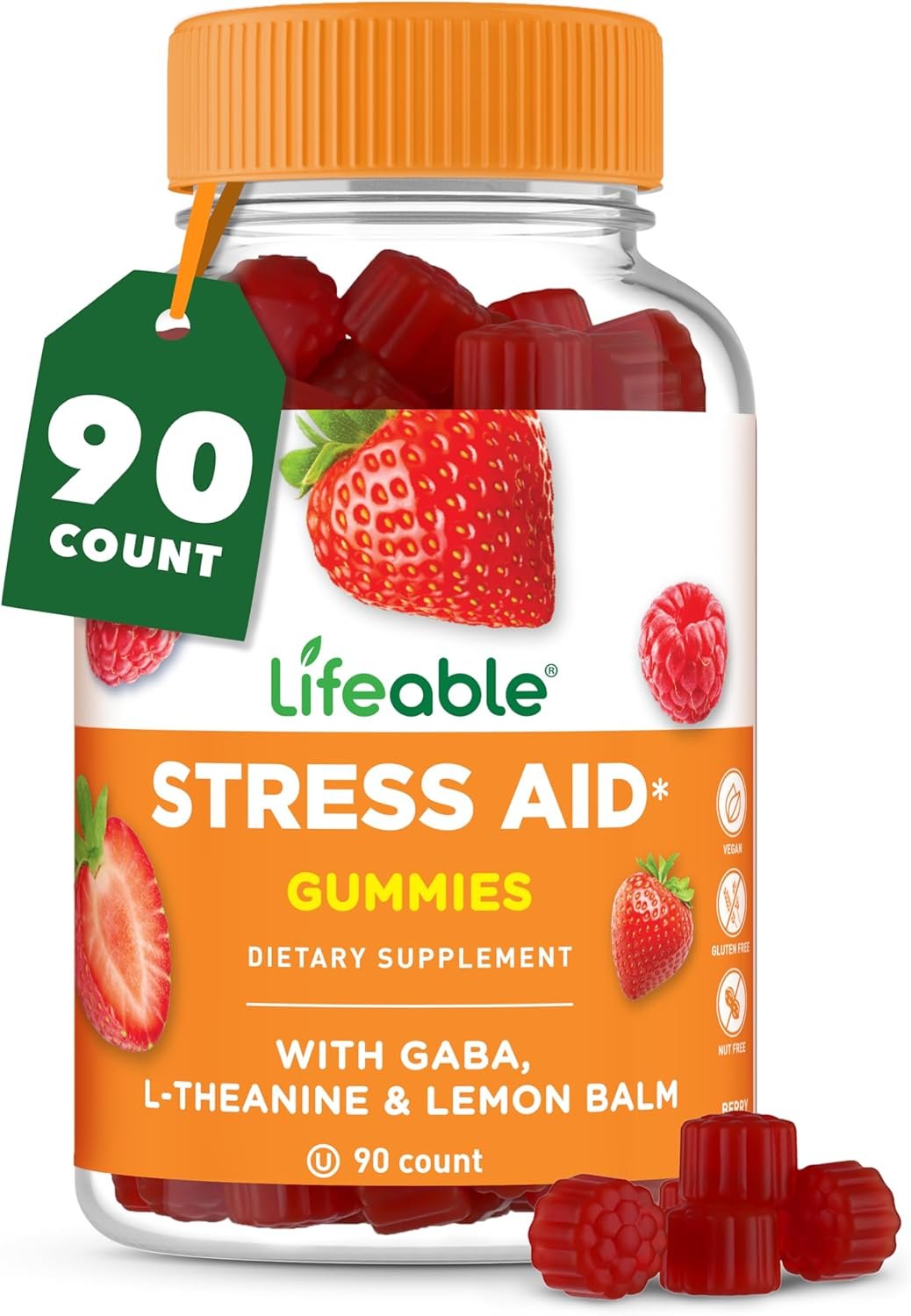 8 reviews for Lifeable Stress Aid Gummies | with Lemon Balm, GABA and L Theanine Supplements | Vegan Non GMO Mood Support Supplement | Great Tasing Stress Vitamins | L-Theanine for Women and Men | 90 Gummies