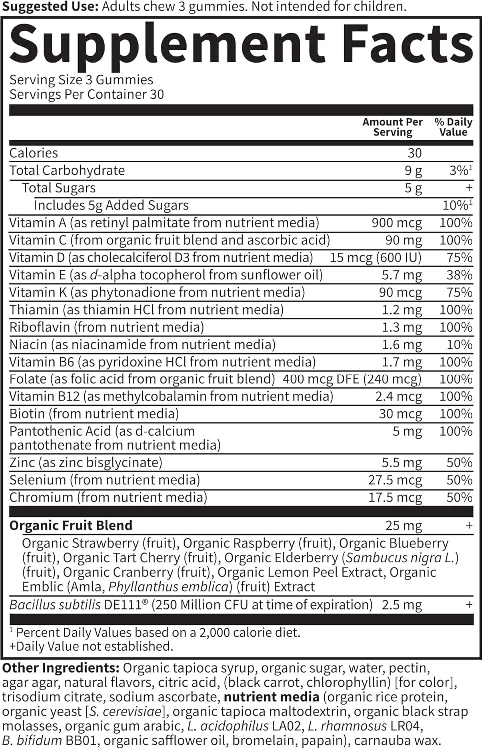 GUMMY DELIVERY: Get all the benefits from whole foods in these chewable daily vitamins; Made with an organic fruit blend for an easy to swallow fruity flavor; Rest assured our Vitamin Code Gummies for Men are made of pectin with no pig gelatin in sight