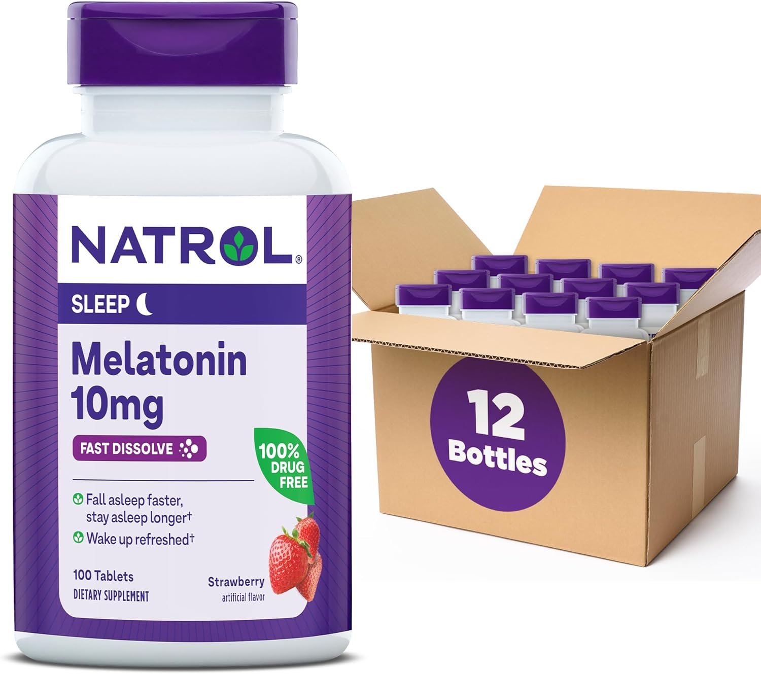 natrol fast dissolve melatonin 10 mg, melatonin supplements for restful sleep, sleep support for adults, 100 strawberry flavored melatonin tablets, up to a 100 day supplyNatrol Fast Dissolve Melatonin 10 mg, Melatonin Supplements for Restful Sleep, Sleep Support for Adults, 100 Strawberry-Flavored Melatonin Tablets, Up to a 100 Day Supply
