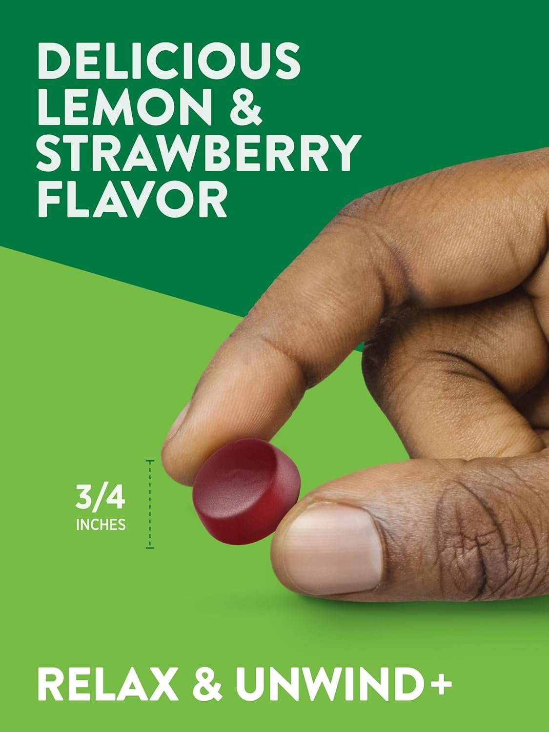 DELICIOUS FLAVORS: Refreshing lemon & strawberry flavored gummies with GABA, L-Theanine & Lemon Balm