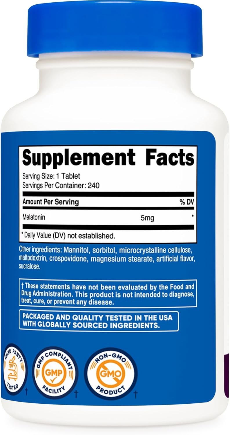nutricost melatonin 5mg, 240 fast dissolve tablets (mixed berry flavor) non gmo, gluten freeNutricost Melatonin 5mg, 240 Fast Dissolve Tablets (Mixed Berry Flavor) – Non-GMO, Gluten Free
