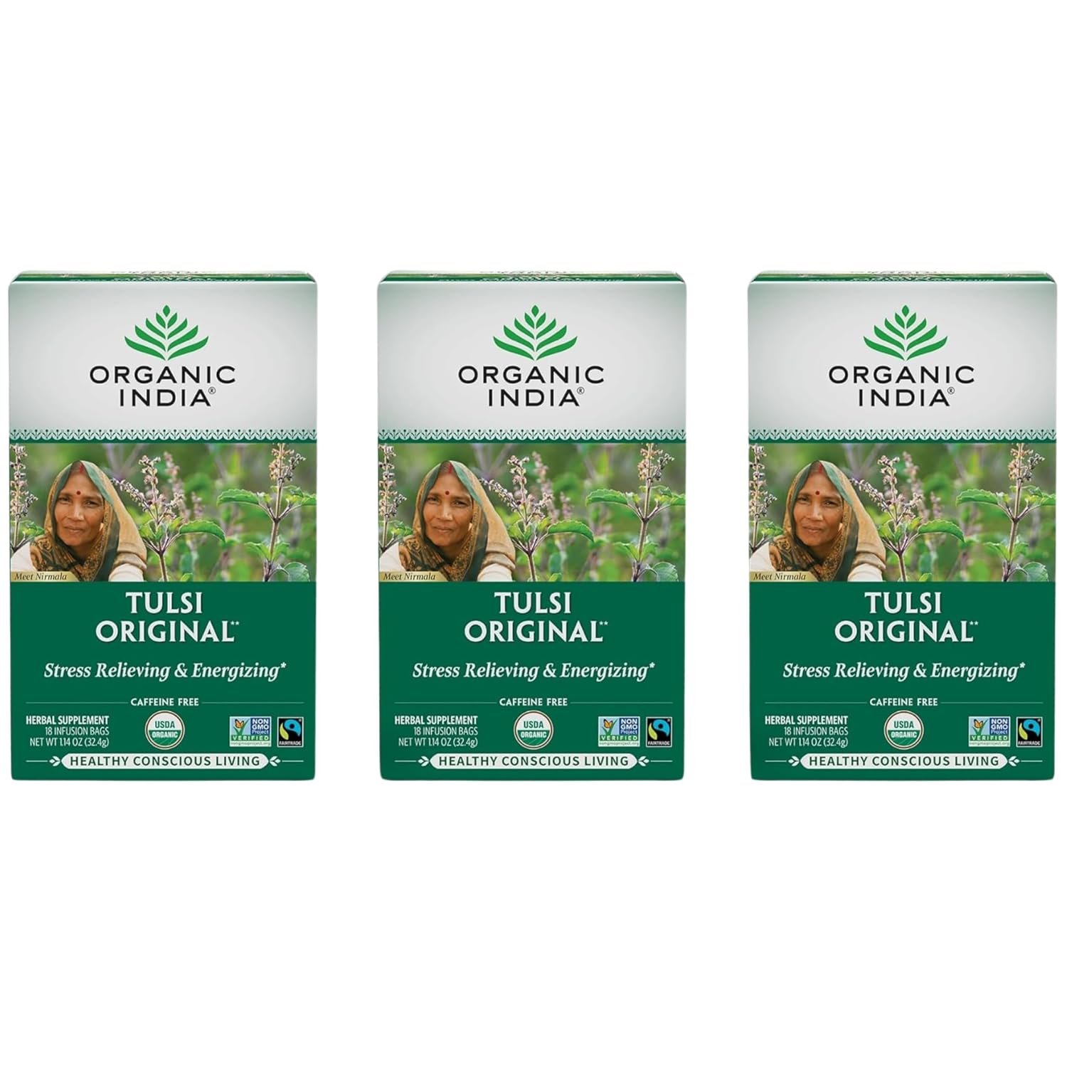 8 reviews for ORGANIC INDIA Tulsi Original Herbal Tea – Holy Basil and African Basil Calming and Stress Relief Tea, Immune Support, USDA Certified Organic, Non-GMO, Caffeine-Free – 18 Infusion Bags, 3 Pack