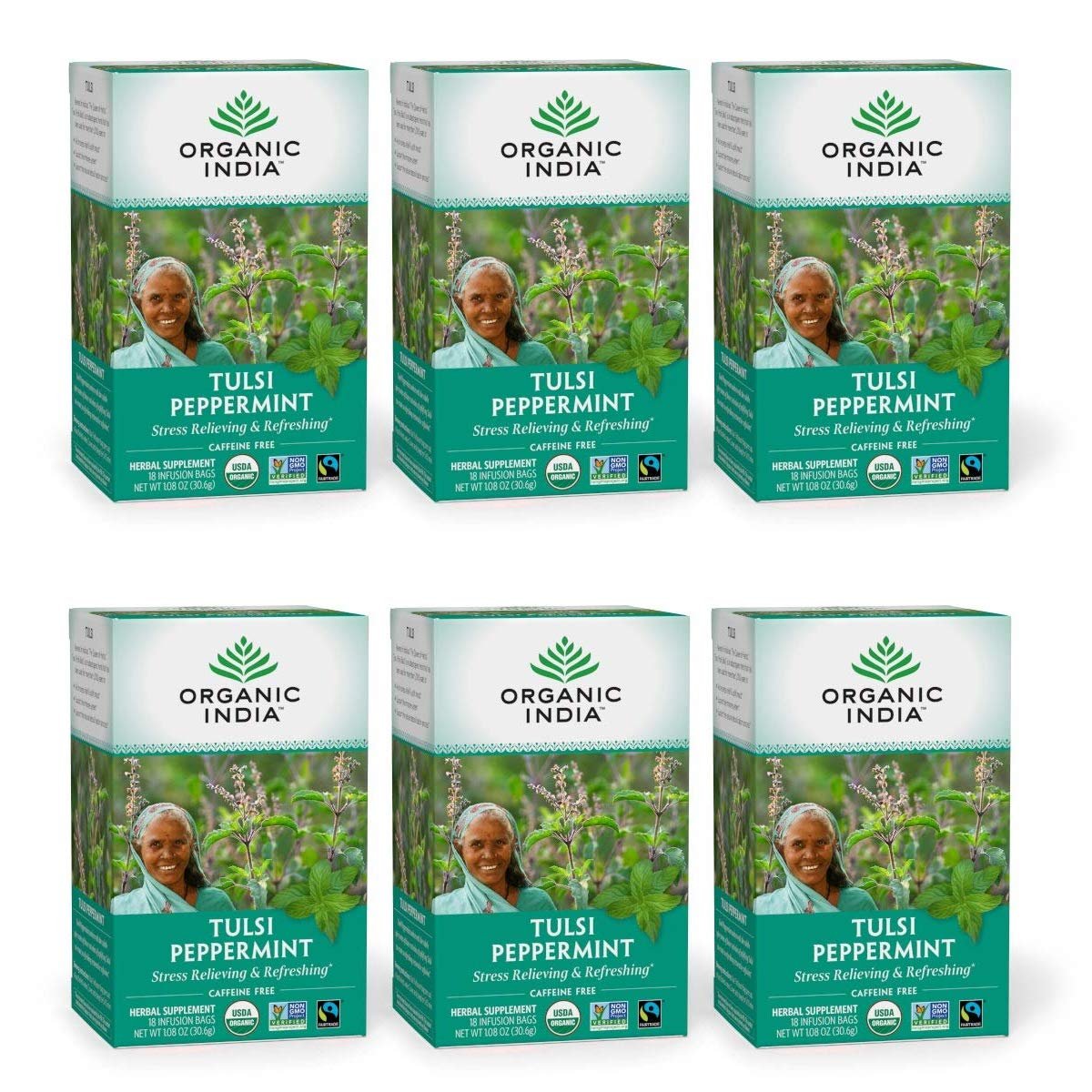 8 reviews for ORGANIC INDIA Tulsi Peppermint Tea – Caffeine Free Herbal Mint Tea – Stress Relieving Holy Basil, Immune Support, Aids Digestion, Vegan, USDA Certified Organic, Fairtrade – 18 Infusion Bags, 6 Pack