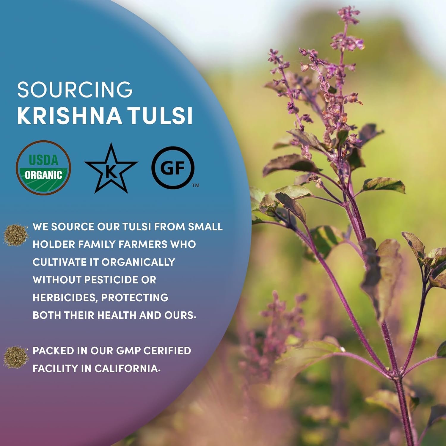 ORGANIC & FAIR TRADE: Grown by smallholder farming families in India. By drinking Tulsi tea, you help provide an increased income that supports the wellbeing of these families. Training farmers in organic agriculture is transforming their health and livelihood.