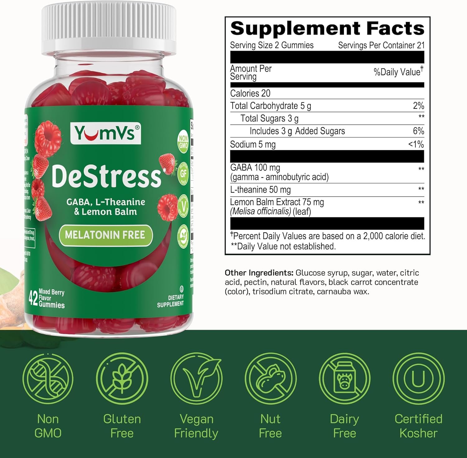 DESTRESS GUMMIES FOR CALM SUPPORT – When life feels overwhelming, these mixed berry calm gummies help you hit the Pause button. YumV’s DeStress Gummies are an easy-to-take supplement with GABA, L-Theanine, and Lemon Balm to support calm mood and relaxation.
